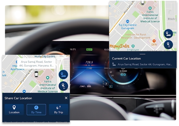 Application allows user to track the vehicle, on the basis of the time, location or by specific trip. User can get the notification about real time vehicle movement. This location can also be shared easily.