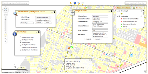 | 4. | Search Tool by Auto-populated Road Name, Road No. which will allow easy recognition of Street Lights in vicinity (~ 10 m) of Roads |