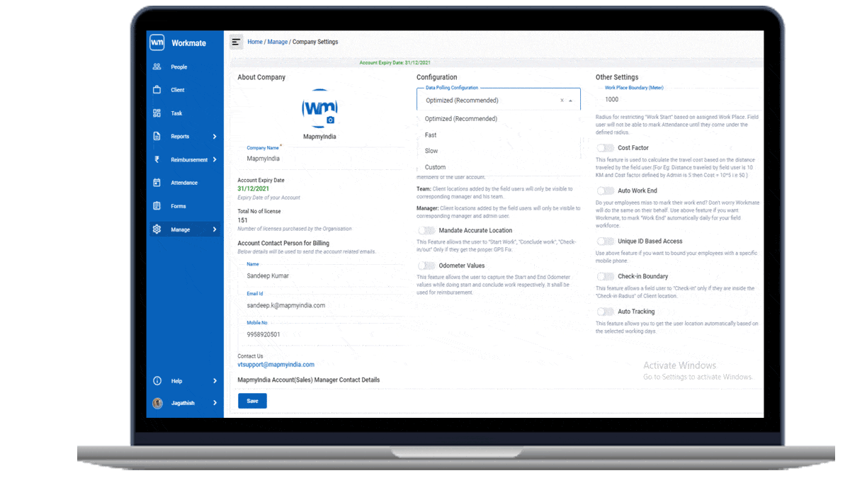 Workmate APIs help users get all the data related to their organisation such as live location of employees, user details, company level configurations, client, task and attendance details.